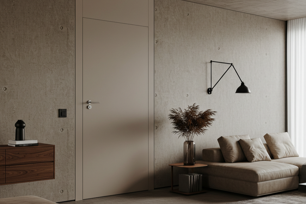 Il design minimale di queste porte le rende ideali per ambienti contract o residenziali che prediligono linee pulite e superfici continue. La cura nei dettagli, come le fughe perfettamente allineate, garantisce un’integrazione visiva armoniosa, trasformando ogni porta in un elemento architettonico discreto o protagonista, a seconda delle scelte progettuali.
