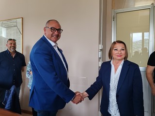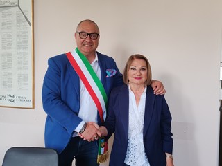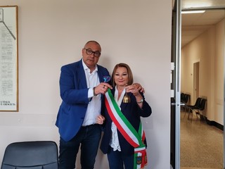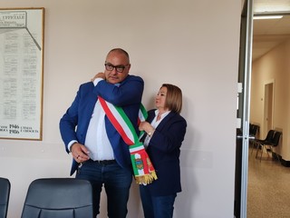 Fabio Perri si insedia come sindaco di Vallecrosia. E' avvenuto questa mattina in Comune il passaggio della fascia tricolore e la stretta di mano tra il neo sindaco e l'ex sindaco pro tempore Marilena Piardi.