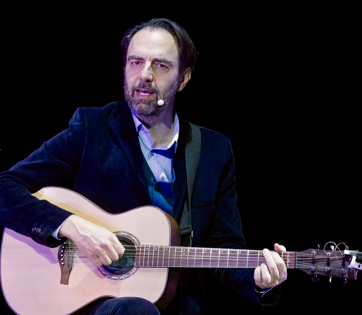 “In casa sentivo la radio che mia mamma teneva sempre accesa. Sentivo molta musica, sono sempre stato appassionato. Mi ci sono avvicinato ancora di più quando i miei genitori, a 14 anni, mi hanno regalato una chitarra. Ho iniziato con Bennato, poi De Gregori, Battisti, De André, ma anche Graziani. Un ampliamento costante. Negli ultimi vent’anni frequento Gaber e De André, ho iniziato nel 2007 a Genova al Teatro dell’Archivolto. Mi sono accostato a loro e propongo spettacoli che si basano sul loro repertorio perché trovo sempre degli spunti utili, non si finisce mai di scoprire la loro profondità. Anche in canzoni già sentite puoi sempre fare attenzione a un verso. Spinge a un servizio intellettuale, nel mettersi in discussione per primi se si vuole crescere”