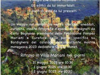 A guidare i visitatori in questo "viaggio nel tempo" sarà Carlo Bagnasco, presidente della Fondazione Pompeo Mariani. Bagnasco, che è anche curatore della sezione dedicata a Bordighera nel catalogo della prestigiosa mostra monegasca del 2023 su Claude Monet, arricchirà il percorso con verità storiche, aneddoti, curiosità e inedite fotografie d'epoca.