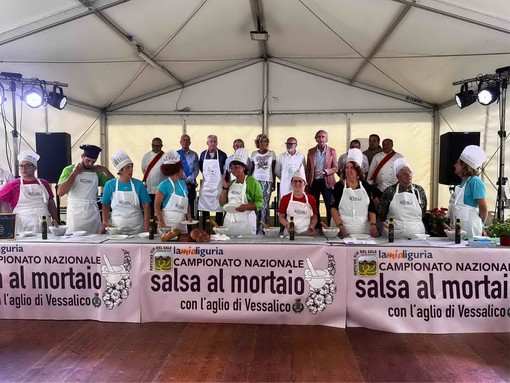 La tappa del Campionato Nazionale di Salse al Mortaio con l'Aglio di Vessalico, svoltasi nell’ambito dell’Expo Valle Impero 2025 a Pontedassio, ha riscosso un grande successo, un evento capace di valorizzare e dare visibilità alle eccellenze locali, comunicandone l'importanza e il valore. La vincitrice della competizione, Marta Ardissone, ha conquistato la giuria con una salsa innovativa che, attraverso un perfetto equilibrio tra tradizione e creatività culinaria, ha esaltato i sapori autentici della Liguria.