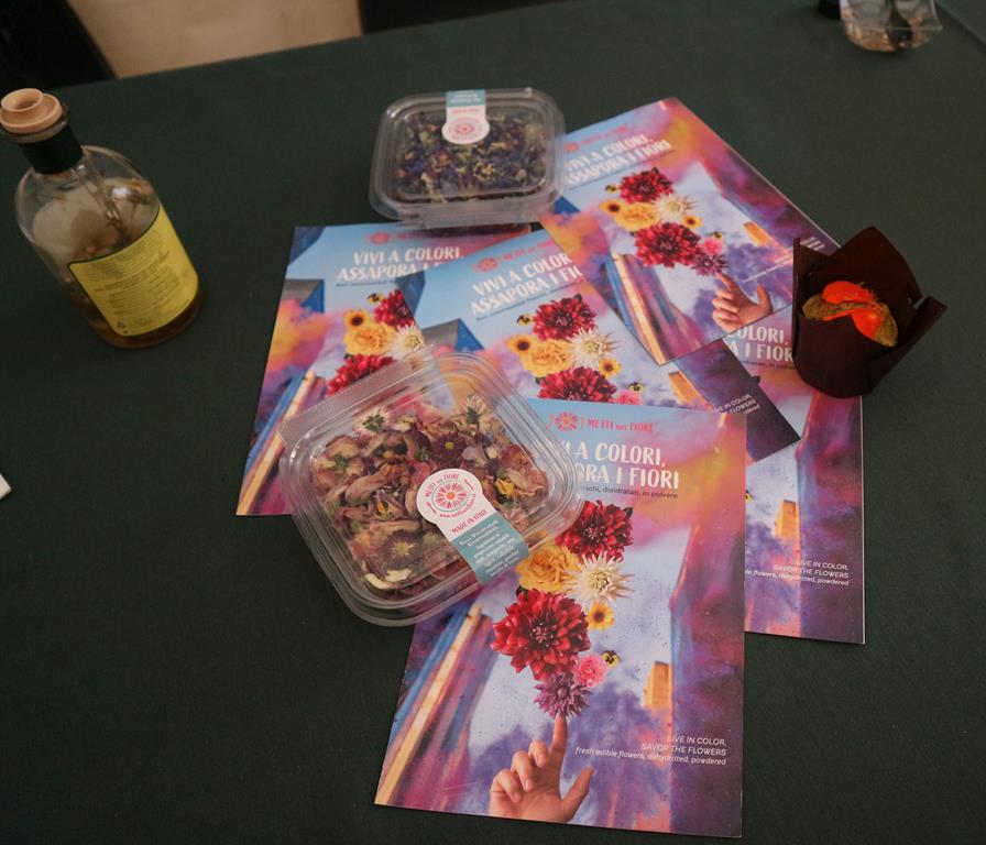 Due le creazioni proposte dallo chef: un muffin al Nasturzio e un elegante dessert floreale, entrambi preparati utilizzando fiori freschi e disidratati dell’azienda “Metti un fiore”.