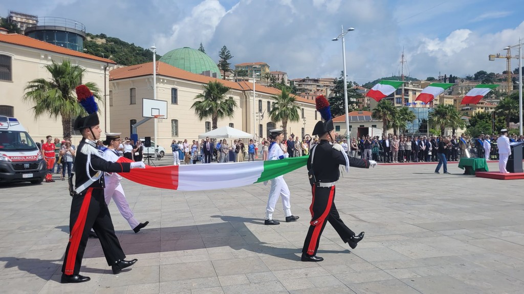 La provincia Imperia ha rinnovato stamattina il proprio legame con i valori fondanti della Repubblica: libertà, democrazia, solidarietà: nella suggestiva cornice di Calata Anselmi a Porto Maurizio, si è la cerimonia istituzionale in occasione della 79ª Festa della Repubblica. L’evento ha visto la partecipazione di numerose autorità civili, militari e religiose del territorio e ha rappresentato un momento solenne di riflessione e riconoscimento dei valori repubblicani.