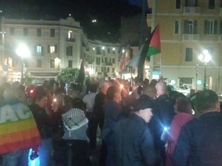 Dal ponte Doria un corteo di persone ha sfilato fino al Comune intonando "Palestina libera"