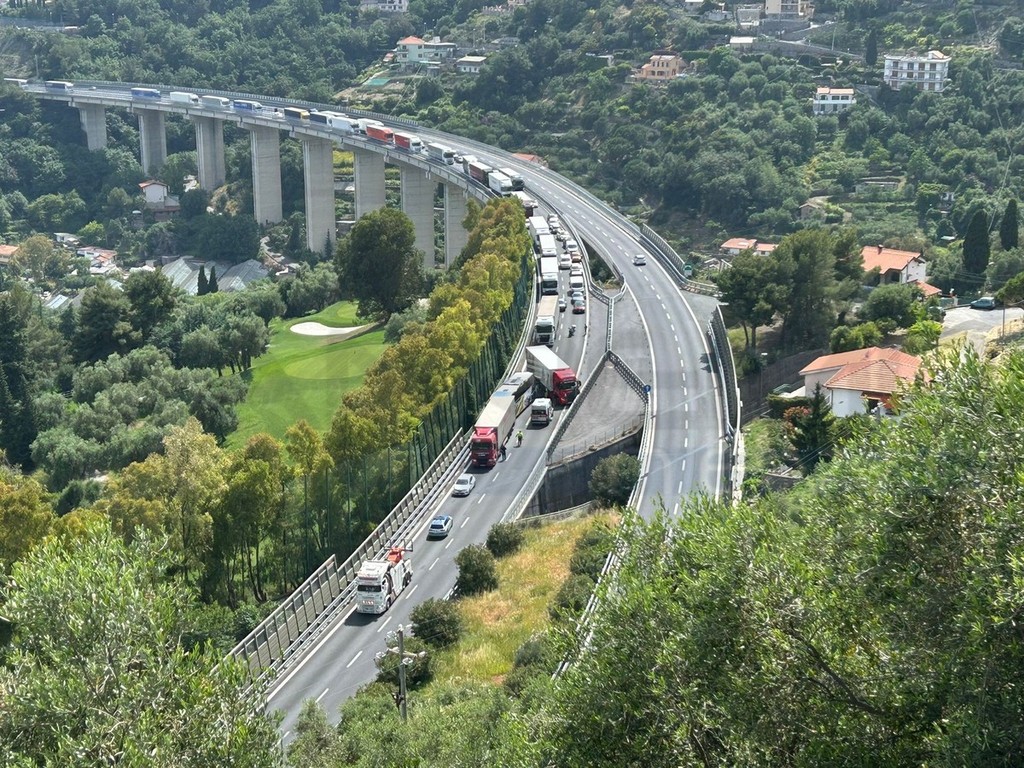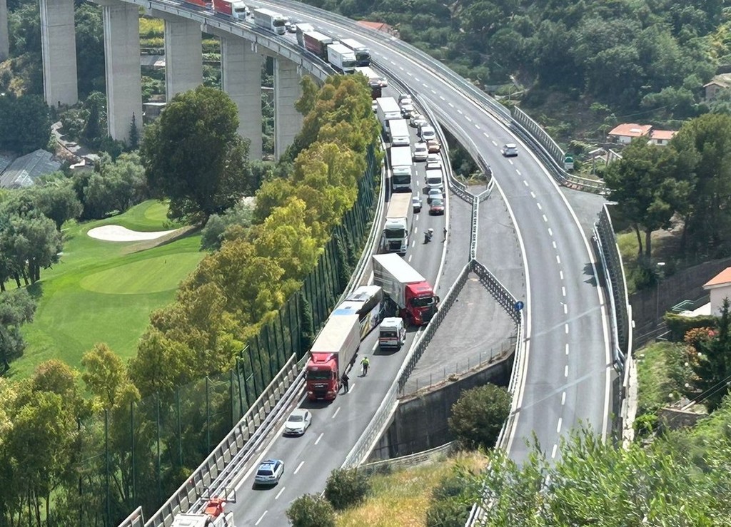 Tamponamento tra tir e bus sull'A10 tra Sanremo Ovest e Arma di Taggia: traffico sbloccato, corsia di sorpasso riaperta