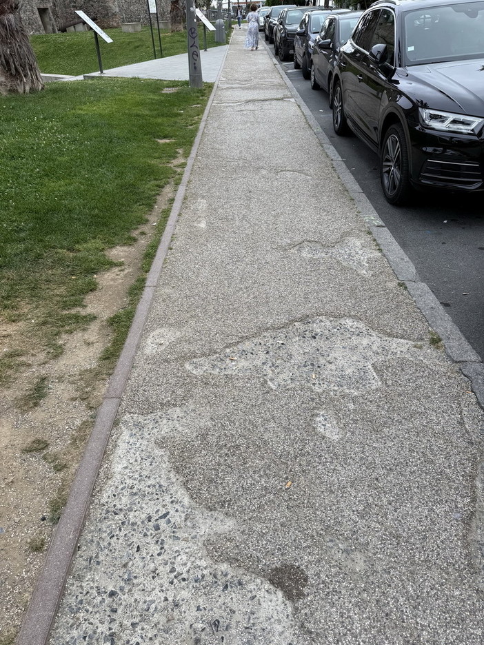 mi vergogno. Da cittadina di Sanremo, non posso fare altrimenti. L’area di fronte a Santa Tecla, presenta marciapiedi in condizioni talmente gravi da risultare quasi impraticabili. Camminarci sopra in sicurezza è impossibile. Il comune dovrebbe garantire sicurezza, non insicurezza!