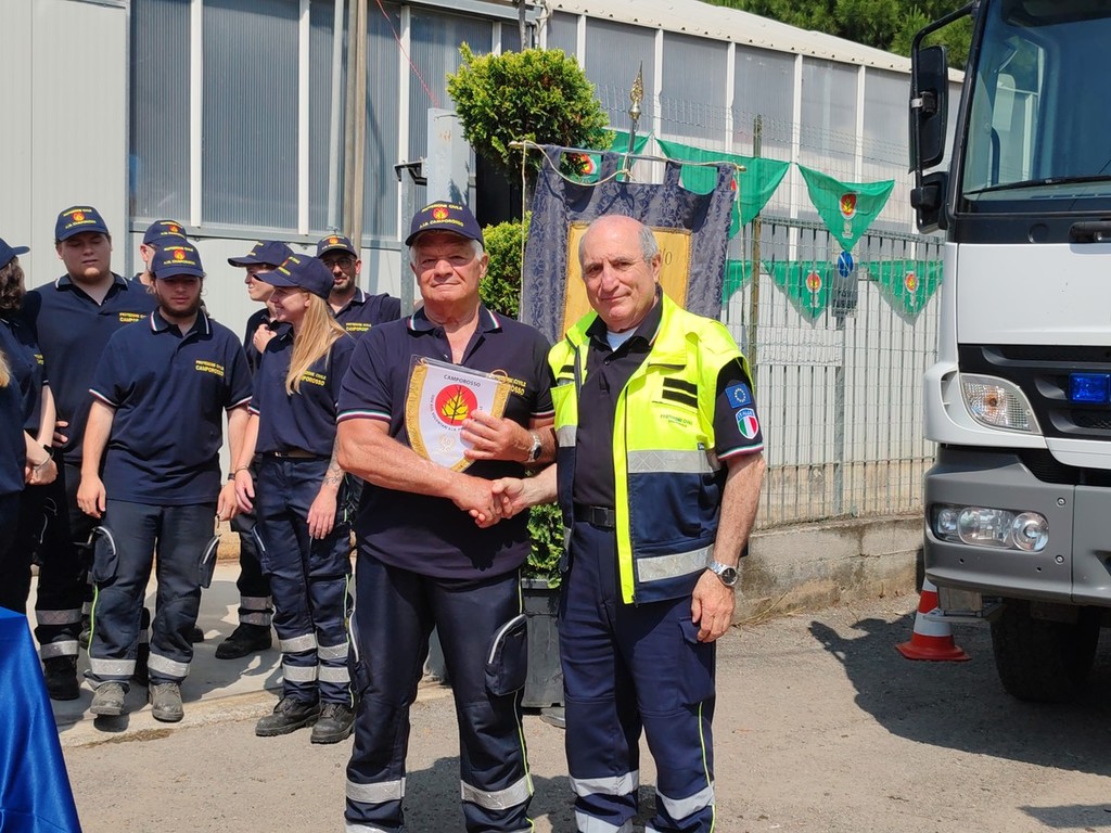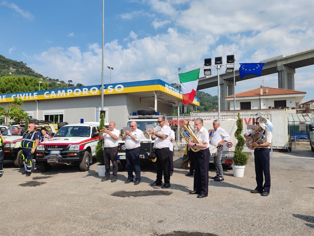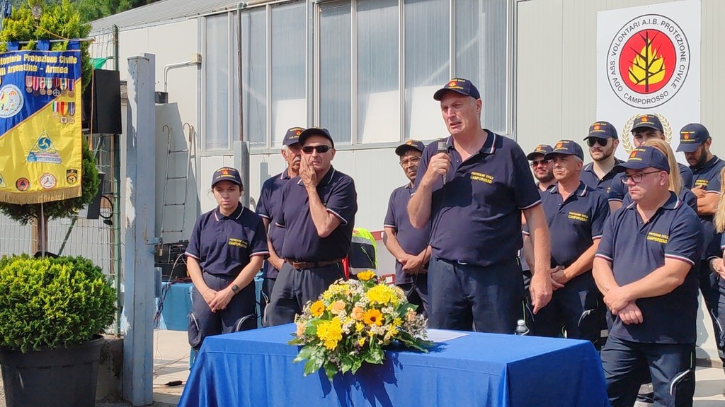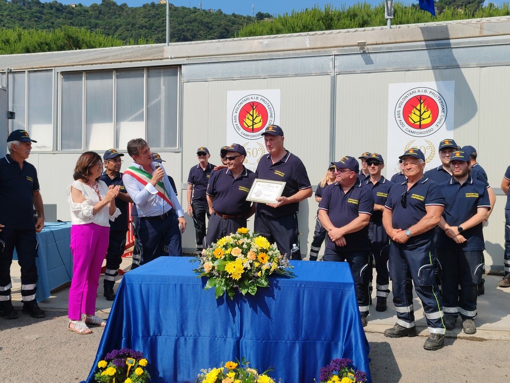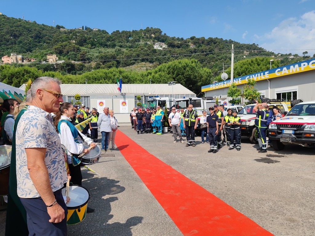 La cerimonia si è svolta in mattinata alla presenza di autorità civili, militari, religiose e delle squadre della protezione civile della provincia. Per l'occasione si sono esibiti la banda musicale di Vallebona e gli sbandieratori e musici del Sestiere Auriveu. "Ci abbiamo messo 50 anni per raggiungere quello che abbiamo ottenuto oggi, la sede, i mezzi e una squadra così numerosa" - commenta Fulvio Pizzo, presidente della Protezione civile di Camporosso - "Tutto questo però lo dobbiamo a due persone che hanno dato il via a tutto: Antonio Raimondo e Elso Piombo. Quando abbiamo iniziato non avevamo niente andavamo a spegnere gli incendi con i propri mezzi, motorini e auto, non avevamo neanche una sede. Poi gentilmente ci hanno offerto un terreno sul quale abbiamo creato la nostra sede. All'inizio era piccola poi il gruppo è cresciuto, le esigenze sono cambiate e così ci siamo allargati. Abbiamo iniziato a fare la sagra dei barbagiuai per raccogliere un po' di soldi per riuscire ad allargarci. Siamo riusciti così a comprare un box in lamiera più grande. Nel 2006 siamo riusciti grazie anche al contributo del Comune a creare la realtà odierna".