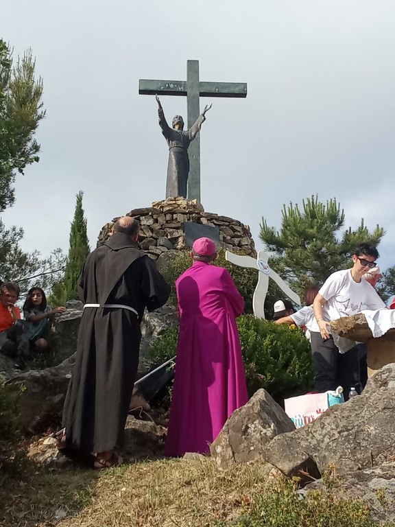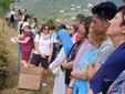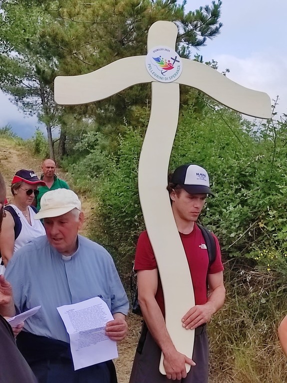 Comunità riunita per il pellegrinaggio a piedi al monumento giubilare di 'Ciapa da Cruxe' a Vallebona. Domenica 1° giugno è stato organizzato dalla parrocchia di San Lorenzo Martire in occasione dell'anno giubilare.