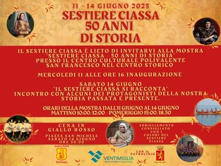 Il Sestiere Ciassa di Ventimiglia festeggia 50 anni di storia con una mostra, un incontro e una 'Cena in giallo rosso'.