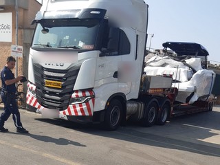 Sanremo: autoarticolato con grossa barca sperona un'auto a Portosole, intervento della Polizia Municipale (Foto)