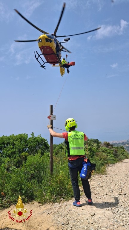 Bordighera: 45enne cade con la bicicletta a Montenero, trasportato in elicottero al Santa Corona (Foto)