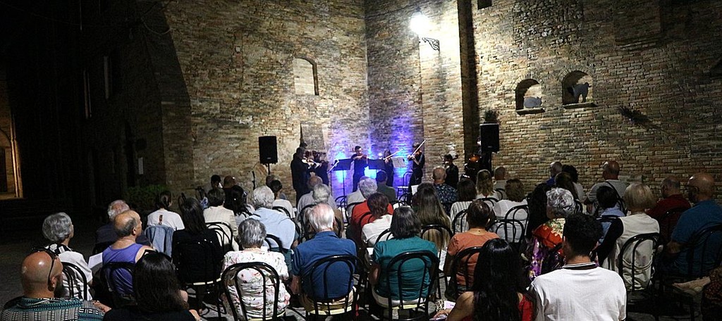 Per una sera Monte Vidon Combatte si è trasformata in una piccola Vienna, capitale mondiale della musica e dell’arte floreale, grazie a un affascinante viaggio musicale ideato dal maestro Ennio Cominetti. Vienna è infatti la patria di geni come Mozart, Beethoven e Mahler, e custode di una delle tradizioni musicali più eleganti: il valzer viennese.