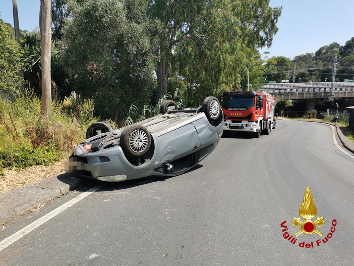 San Lorenzo, auto si ribalta in via Pietrabruna: illeso il giovane alla guida