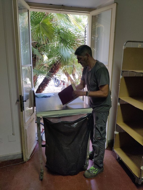 L’intervento, autorizzato e finanziato dalla Soprintendenza Archivistica e Bibliografica della Liguria diretta dalla dott.ssa Francesca Imperiale, è stato realizzato dalla ditta con sede a Cuneo "Colloco”, fornitrice di servizi per archivi e biblioteche di tutta Italia, che garantisce la presenza di operatori specializzati e strumentazione idonea al trattamento del patrimonio bibliografico (pennelli a setole morbide, aspiratori con filtri HEPA e tavoli con cappa aspirante) per rimuovere la polvere accumulata.