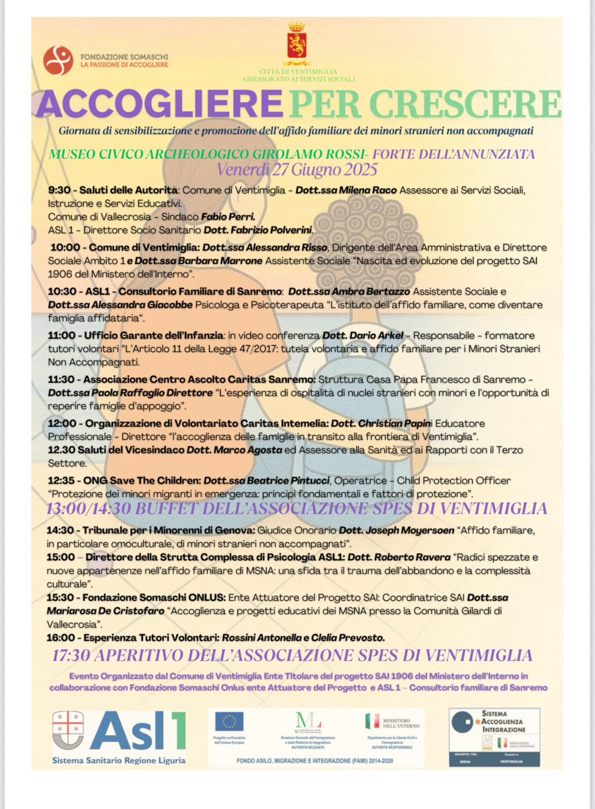 È in corso in queste ore, nella cornice del Museo Civico Archeologico “Girolamo Rossi” al Forte dell’Annunziata di Ventimiglia, la giornata di sensibilizzazione e promozione dell’affido familiare dei minori stranieri non accompagnati (MSNA), organizzata dal Comune di Ventimiglia in collaborazione con la Fondazione Somaschi Onlus, ASL1 e diversi enti del terzo settore.