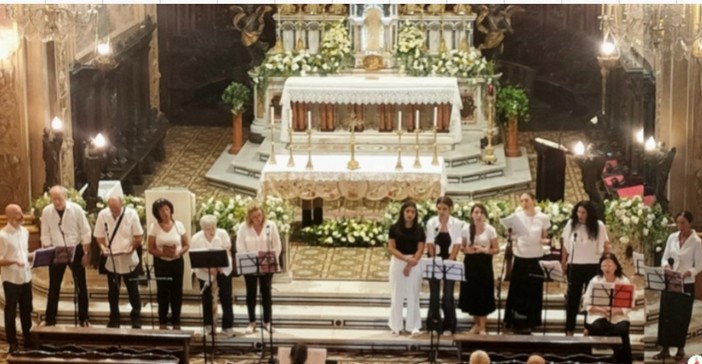 Un successo travolgente quello del concerto di evangelizzazione tenuto questa sera da Happy Chorus RnS, che ha riempito la Basilica Santuario del Sacro cuore di Gesú a Bussana,con note di commozione e speranza. Il coro, animato da una profonda fede e da una travolgente passione musicale, ha saputo toccare il cuore del pubblico con canti che non erano solo melodie, ma vere preghiere di elevazione spirituale: è tempo di vivere guardando in alto