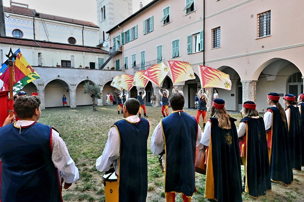 Un chiostro gremito ha fatto da cornice, nella serata di ieri, alla presentazione ufficiale dei nuovi costumi degli Sbandieranti dei sestieri e musici del Libero Comune Marinaro di Ventimiglia. L’evento si è svolto nello storico Chiostro di Sant’Agostino, luogo simbolo della cultura cittadina, e ha visto la partecipazione di numerose autorità, tra cui il Sindaco, la Giunta Comunale, l’associazione SPES e diversi esponenti della vita sociale e culturale ventimigliese.
