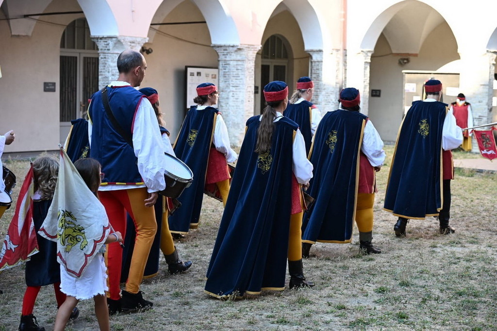 La rappresentativa comunale, che da anni porta alto il nome della città in rievocazioni storiche e manifestazioni folkloristiche in tutta Italia, si è mostrata in una veste completamente rinnovata. I nuovi costumi, realizzati in tessuto jeans e caratterizzati dai colori blu, rosso e giallo — assieme ai richiami dei sestieri storici della città — segnano un’evoluzione stilistica significativa, capace di unire modernità e rispetto per la tradizione.