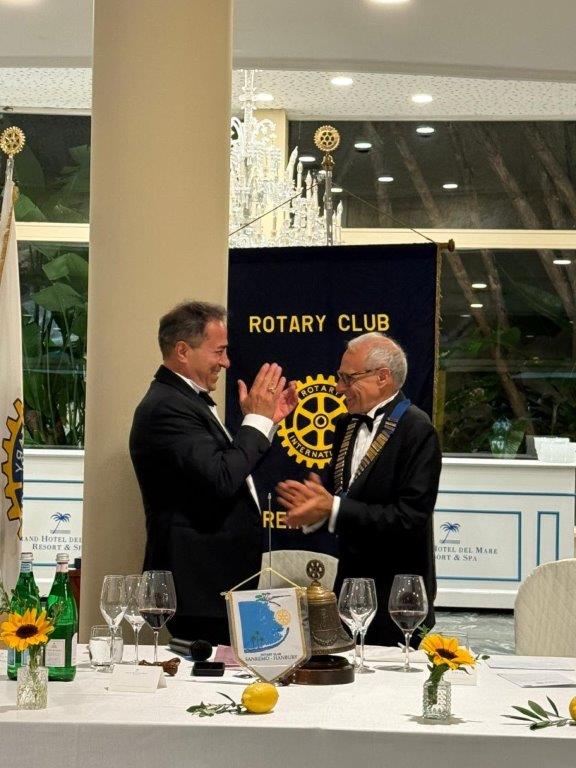 La cerimonia ha visto la spillatura di un nuovo socio, il giovane e stimato professionista Alessandro Bellanca, presentato dal socio Mirko Di Carlo, accolto con un lungo applauso da tutti i presenti. Un momento particolarmente emozionante è stato il video riepilogativo dell’anno rotariano, realizzato da Fulvio Fusini, commentato dallo stesso presidente con voce commossa. Durante la serata sono state conferite cinque onorificenze Paul Harris Fellow: al Past President Massimo Rossano, per il servizio svolto nell’anno 23/24; a Paolo Meloni, per l’impegno nella campagna “Stop HPV”; a Fulvio Fusini, per l’eccellente lavoro come braccio destro del presidente; a Gianluigi Centorame, prefetto sempre disponibile ed innovativo; e a Rino Cioffi, per il volontario contributo al ripristino del sito del Club.