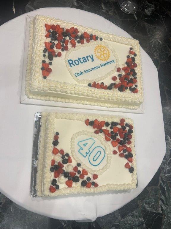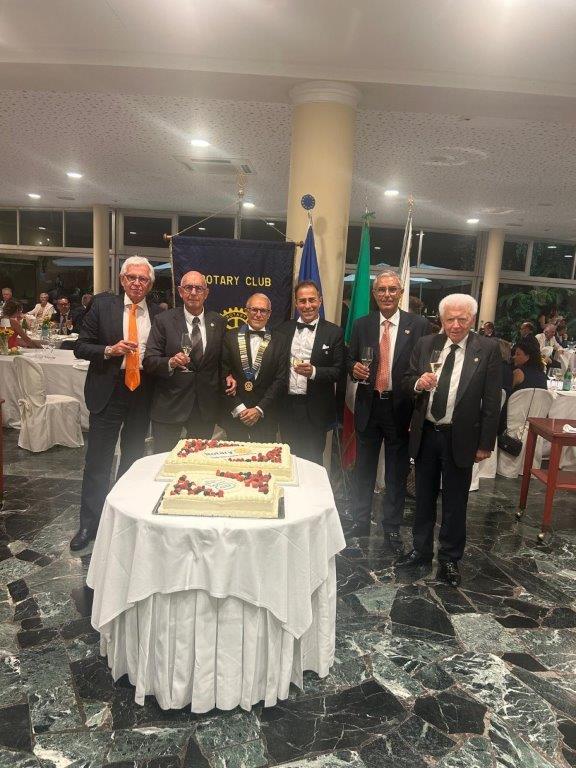 A chiudere l’evento, il taglio della torta celebrativa per i 40 anni del Club, offerta dai soci fondatori del Club, Sergio Maiga, Angelo Granieri, Piercarlo Croce e Oreste Magnani: un momento simbolico che ha unito memoria, spirito di servizio e futuro. Il tocco di campana congiunto del Presidente Veruggio insieme all’ormai Past President Viglietti ed i due Assistenti del Governatore ha ufficialmente dato inizio al nuovo anno rotariano.