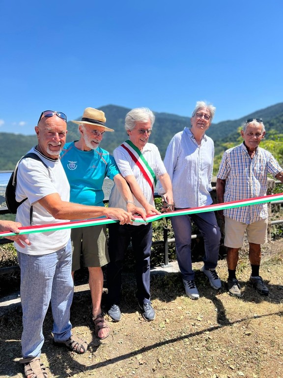 Il Sindaco Remo Moraglia prima di tagliare il nastro dell’inaugurazione ha ringraziato gli autori dell’opera per la passione e la disponibilità, il fabbro Antony Oliverio Manno che ha costruito i supporti metallici per l’installazione e il Presidente del CAI di Bordighera Ettore Anghinoni che ha presenziato alla cerimonia