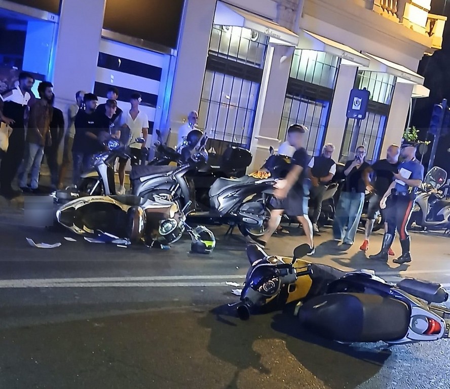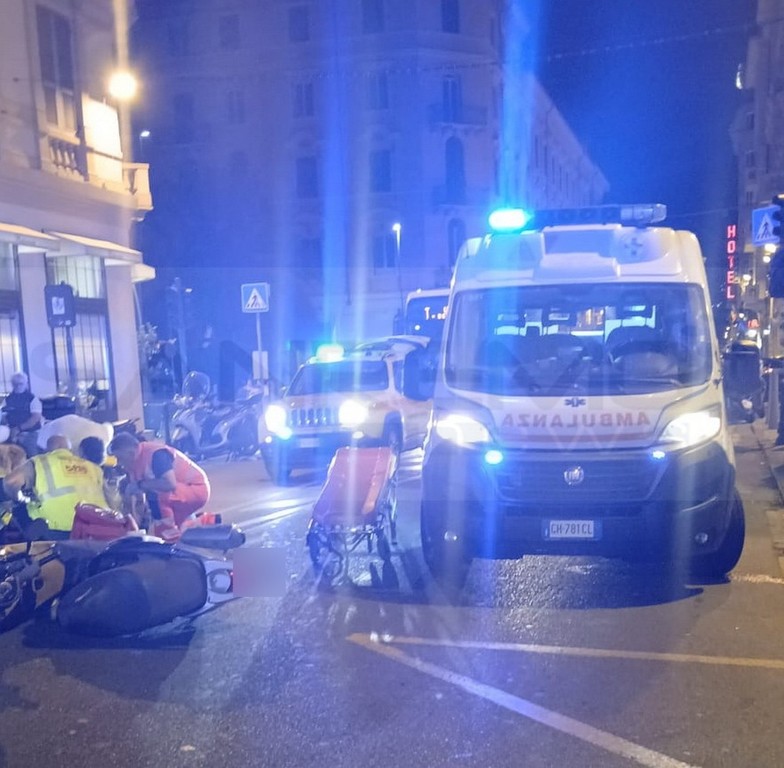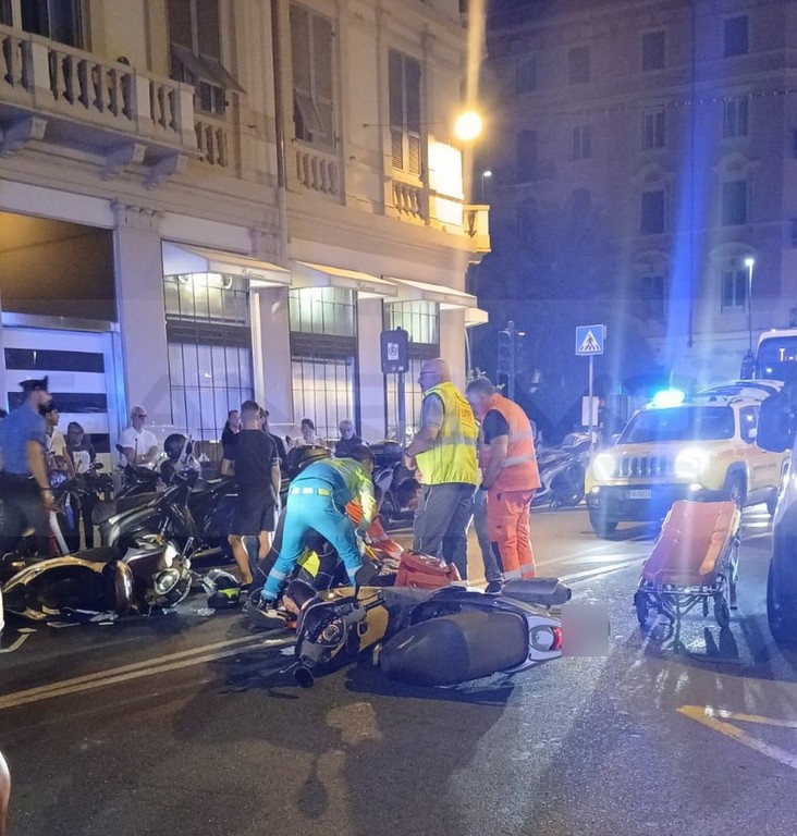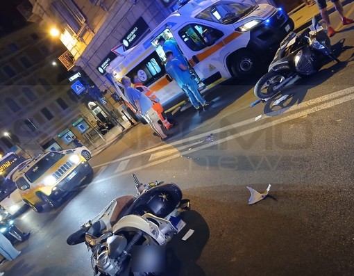 Scontro tra due scooter, ieri sera poco prima della mezzanotte, in via Roma a Sanremo nei pressi dell’incrocio con corso Mombello.