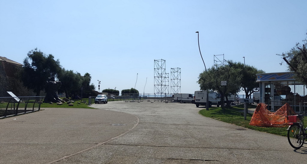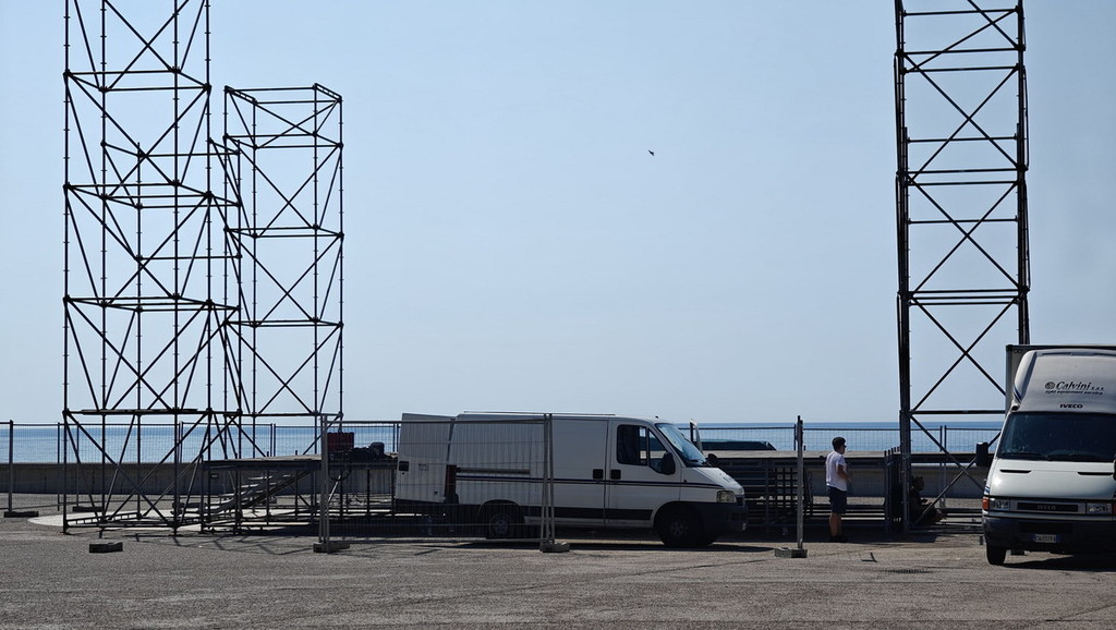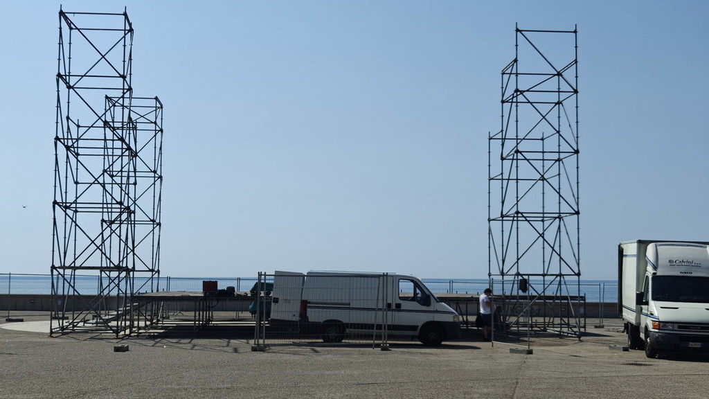 Nelle ultime ore sono state già innalzate le due 'torri' che rimarranno ai lati del palco e, pian piano saranno installate le 'americane' per le luci, oltre chiaramente gli impianti audio necessari per ospitare gruppi e cantanti che si esibiranno. Pian di Nave sta diventando un palcoscenico naturale con panorama sul mare di fronte alla città e, a fianco, la splendida e storica fortezza di Santa Tecla. Il programma dei concerti è ricchissimo e, con il via ai lavori per il palco, cresce l'attesa per il primo appuntamento
