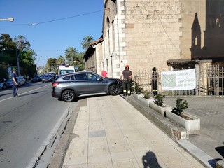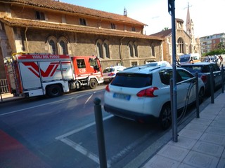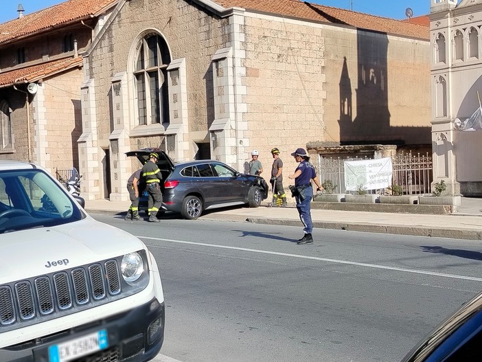 Sanremo: auto si schianta contro la chiesa Anglicana, traffico in tilt ed intervento dei Vigili del Fuoco (Foto)