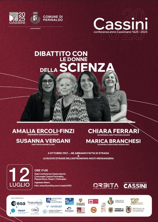 Un dibattito con le donne della scienza verrà proposto alle 17 nella sala conferenze dell'Osservatorio comunale Cassini in occasione dell'anno Cassiniano 1625-2025. "A partire dalle 17 si potranno incontrare e ascoltare Amalia Ercoli-Finzi, ingegneria aerospaziale Polimi, Susanna Vergani, direttrice di ricerca CNRS, Chiara Ferrari, astrofisica e direttrice di Ska-France e Marica Branchesi, astrofisica del Gran Sasso Science Institute" - fa sapere il sindaco Francesco Guglielmi - "Dal 4 ottobre 1957 ne abbiamo fatta di strada, sarà un'occasione per parlare delle nuove strade dell'astronomia multi-messaggera. L'ingresso è libero".