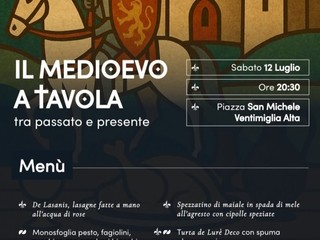 "Il Medioevo a tavola tra passato e presente" sarà il tema al centro dell'evento che si terrà sabato 12 luglio alle 20.30 in piazza San Michele a Ventimiglia Alta.