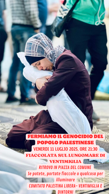 Il Comitato Palestina Libera di Ventimiglia promuove all’interno della campagna nazionale Gazalastday la quarta iniziativa di sensibilizzazione delle coscienze con una fiaccolata sul lungomare di Ventimiglia indetta per venerdì 11 luglio.