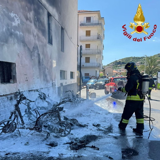 Cinque moto sono andate distrutte da un incendio, questo pomeriggio in via Allavena a Riva Ligure. Sul posto sono intervenuti i Vigili del Fuoco di Sanremo