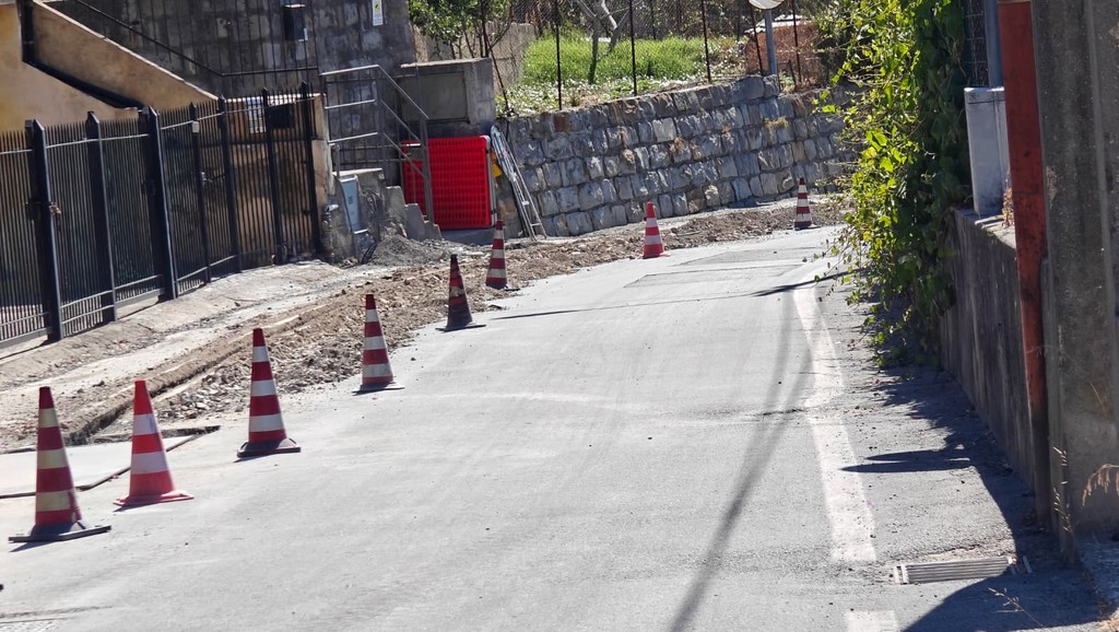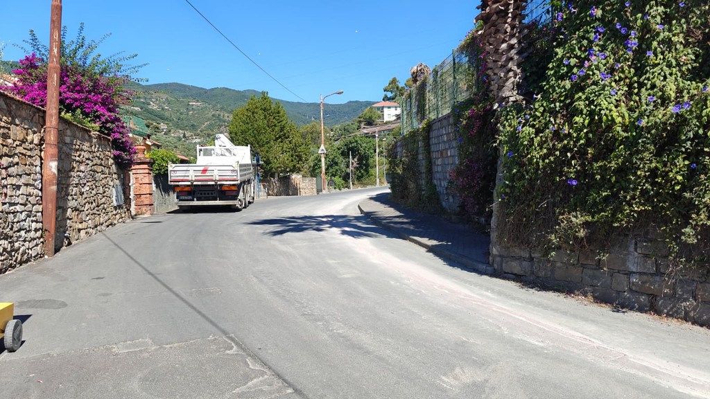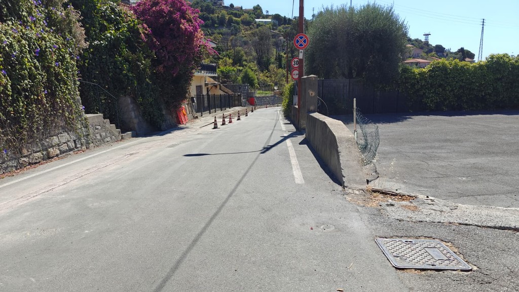 Sanremo: nuovo intervento per posare la fibra e chissà se verrà ripristinato l'asfalto sempre più pericoloso in strada Borgo Tinasso (Foto)