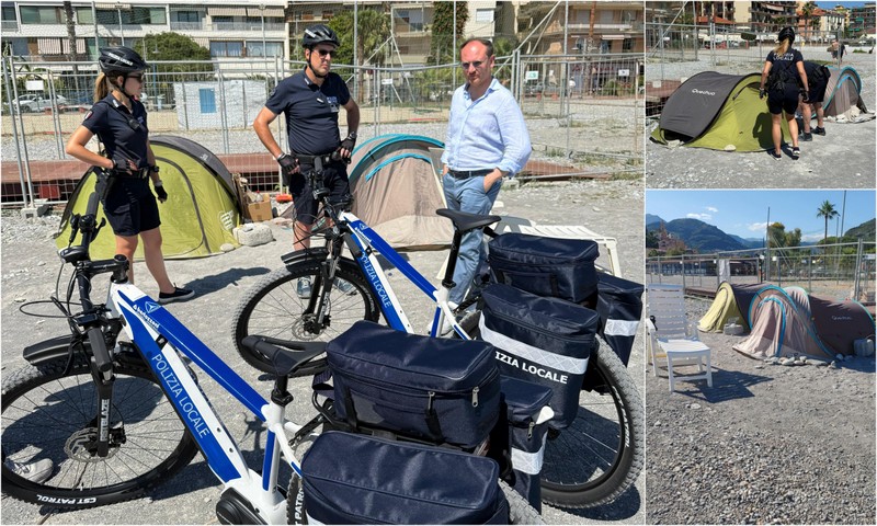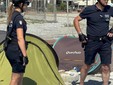 Ventimiglia, accampamenti abusivi in spiaggia: sgomberati dagli agenti in e-bike (Foto)