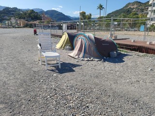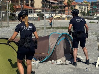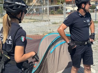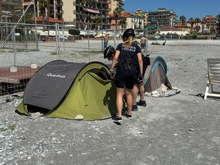 Tende, sdraio e rifiuti. Sono stati trovati e sgomberati dagli agenti della polizia locale in e-bike alcuni accampamenti abusivi presenti in spiaggia nei pressi della foce del fiume Roya a Ventimiglia.