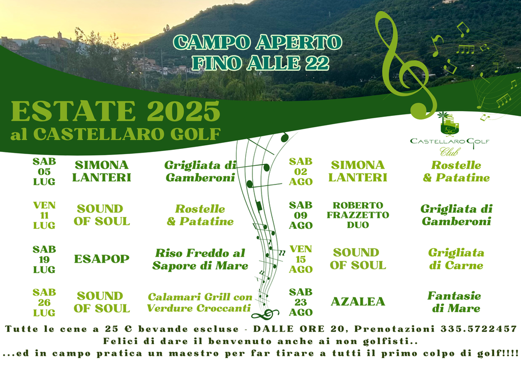 Oltre alle serate evento, il Castellaro Golf Club ha lanciato numerose offerte estive dedicate sia al fruitore occasionale che al cliente più fidelizzato. Per non perdere nessuna novità e scoprire tutte le promozioni, si invitano gli interessati a seguire i canali social ufficiali del club.