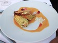 · Fiori di zucca farciti con ricotta e maggiorana, accompagnati da petali di Bocca di Leone, cremoso al datterino giallo e cialda croccante di Parmigiano Reggiano