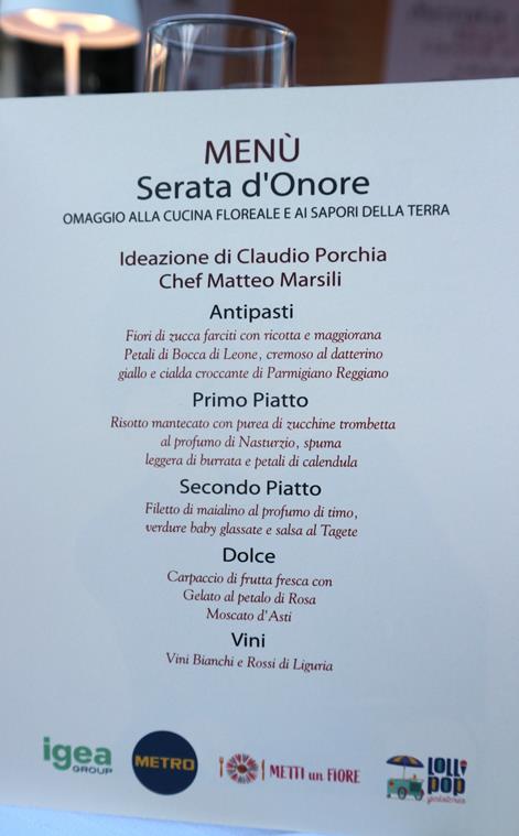 Il menù, concepito come omaggio all’eleganza e alla bellezza dei fiori, ha accompagnato gli ospiti in un viaggio sensoriale ricco di creatività e raffinatezza. In ogni piatto, i fiori, forniti dall’azienda “Metti un fiore”, leader nazionale nella coltivazione di fiori eduli, non erano semplici decorazioni, ma ingredienti veri, scelti per la loro intensità aromatica ed il gusto originale.