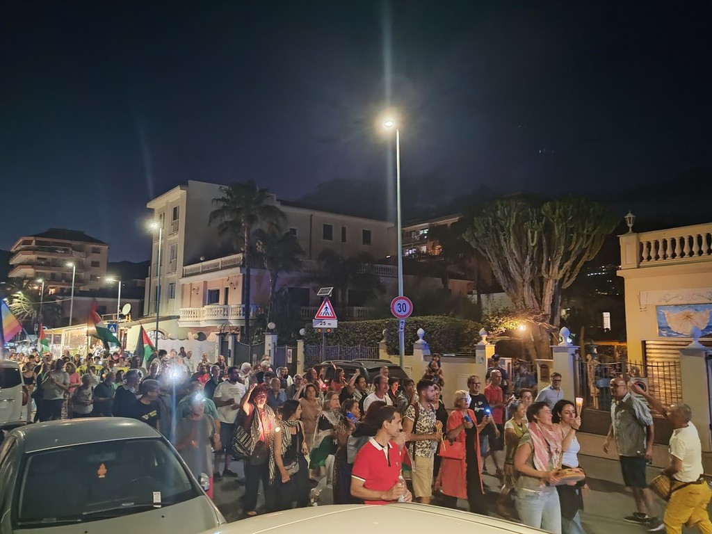 Tamburi, bandiere, striscioni, candele e cori: "Palestina libera, stop al genocidio". Una fiaccolata per fermare il genocidio del popolo palestinese si è svolta in serata a Ventimiglia.