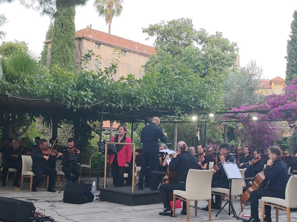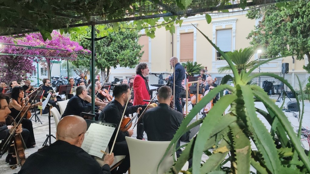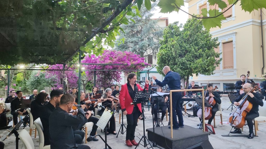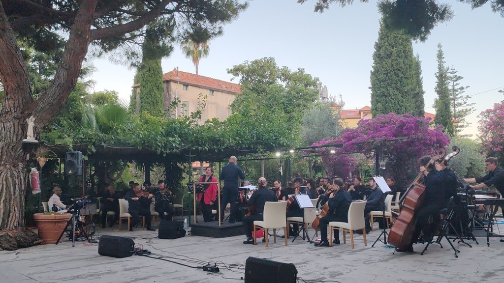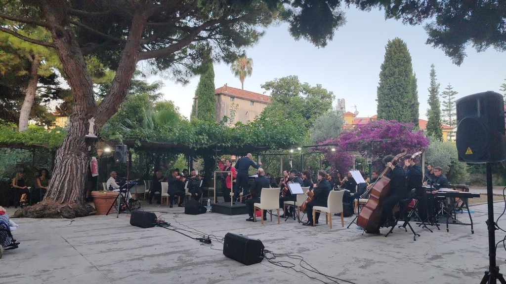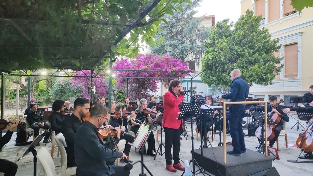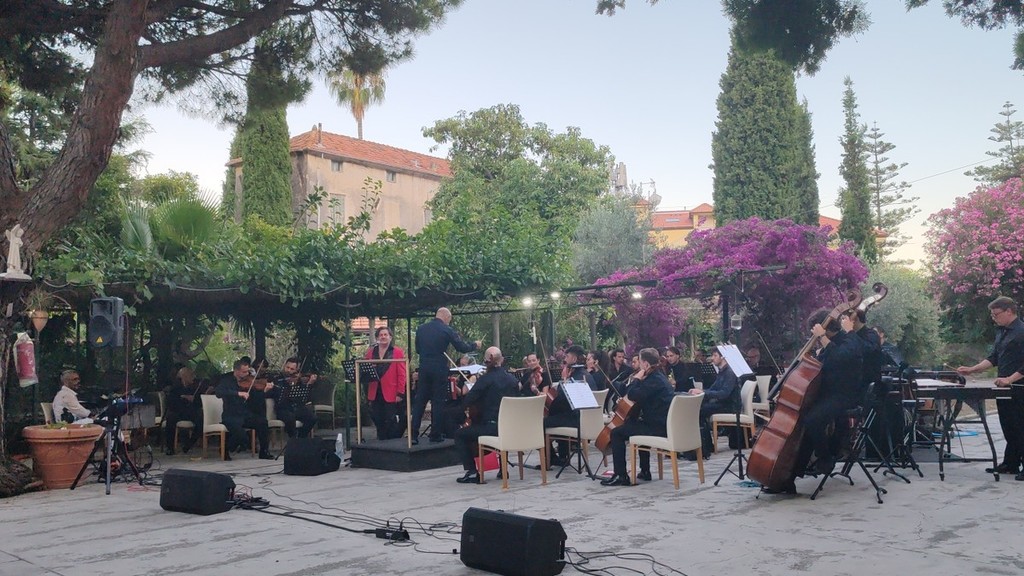 Una serata dedicata ai successi di Domenico Modugno. Il concerto dell'Orchestra Sinfonica di Sanremo, andato in scena ieri sera alla Fondazione Chiappori a Latte, frazione di Ventimiglia, incanta ed emoziona il numeroso pubblico presente nel giardino della struttura.