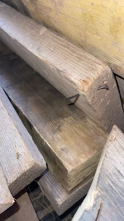 Dalle foto in effetti è possibile notare la presenza dei chiodi sporgenti di queste tavole, alcuni di questi anche rivolti in direzione della strada e non del muro, andando a creare un effettivo pericolo per i passanti, che potrebbero rimanere impigliati o anche ferirsi per colpa del ferro, come è anche già successo a quanto raccontato.