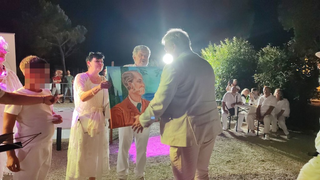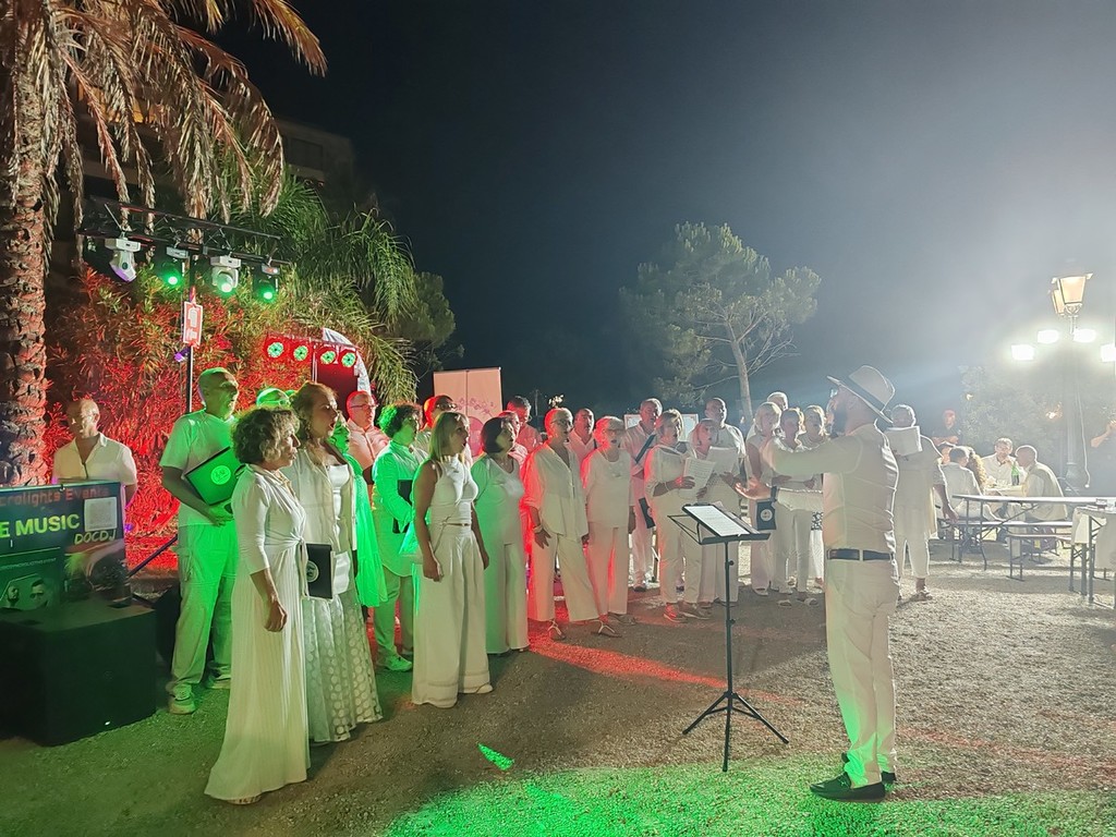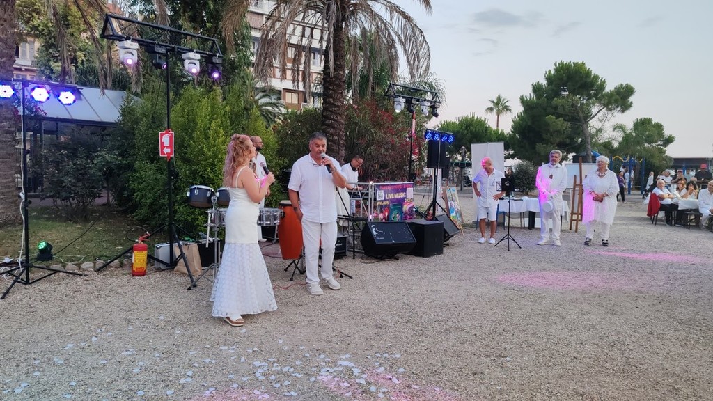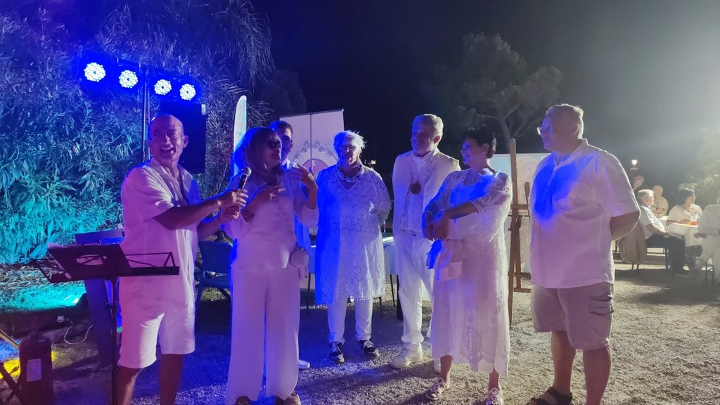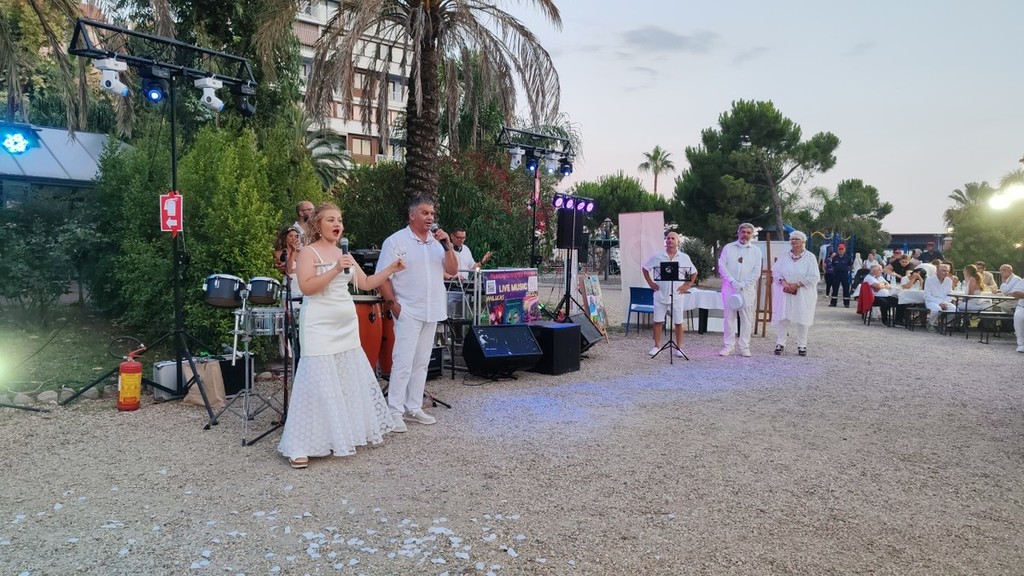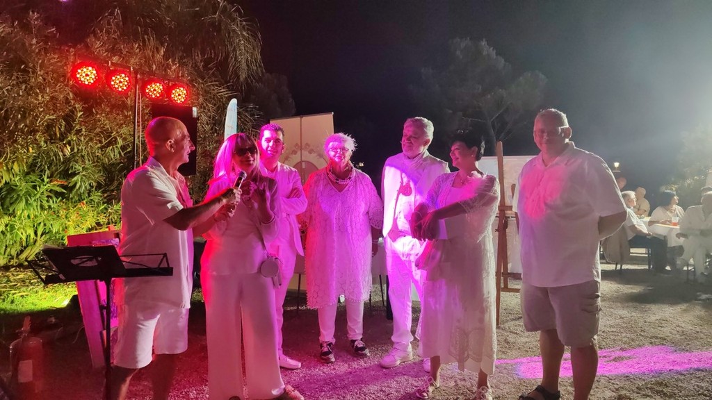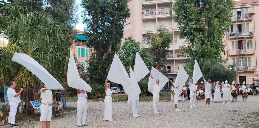 I partecipanti hanno decorato i tavoli con posate, piatti, bicchieri, fiori, candele e oggettistica varia, tutto rigorosamente in bianco, ispirati dal tema dell'edizione 2025: 'una serata all'Opera'. Il tavolo considerato più bello, alla fine, ha vinto un premio: una bicicletta bianca. Un momento conviviale in cui oltre a cenare i presenti hanno potuto ballare, cantare, ammirare le opere d'arte esposte dall'associazione culturale 'Venti d'Arte' e le esibizioni dei sestrieri, dei cantanti, dei ballerini di tango, del coro Anc Ventimigliese e del maestro di Ju Jitsu Maurizio Brancato, che ha mostrato, insieme a una collaboratrice, come può essere utile un corso di autodifesa personale femminile, divertendosi fino a tarda notte grazie alle musiche proposte da DjClaudio. Si è svolta anche una lotteria il cui ricavato servirà per restaurare il pianoforte di San Francesco. Il vincitore estratto si è aggiudicato un quadro di Salvatore Goffredo che, in seguito, ha regalato alla Spes.