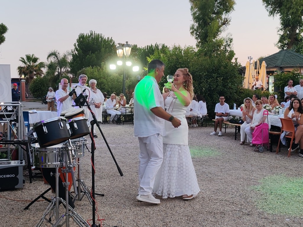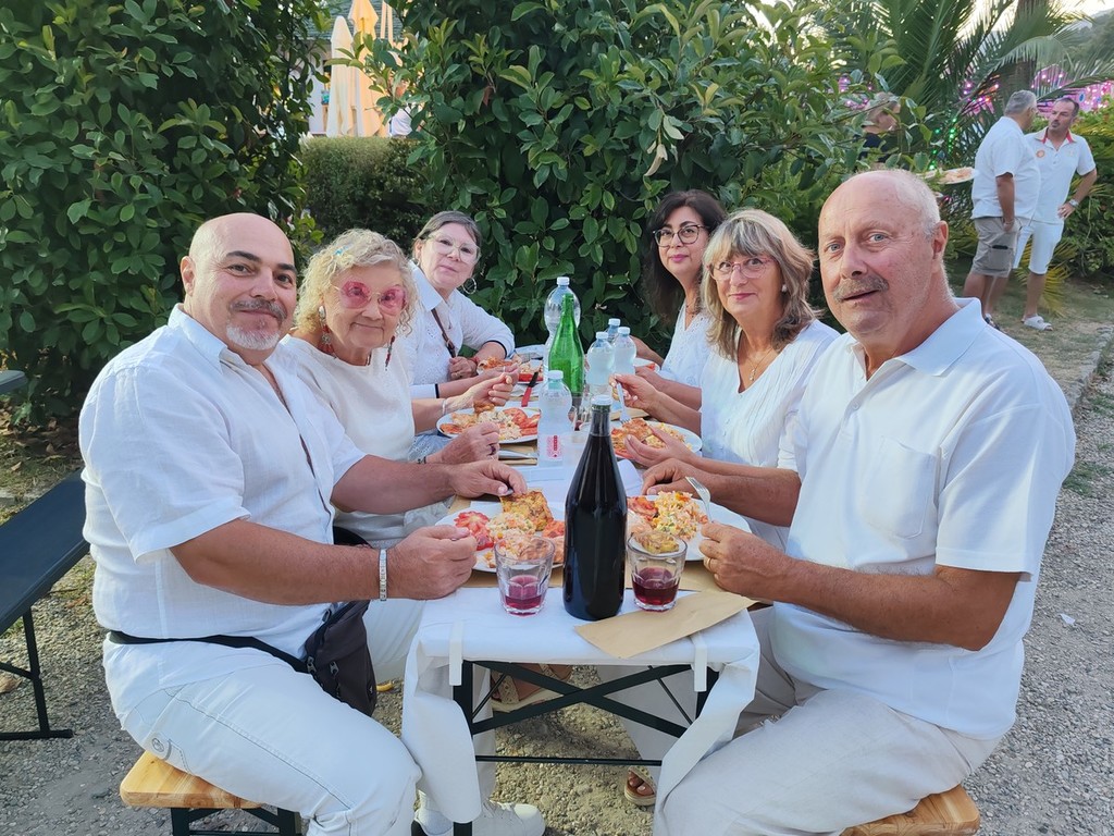 Anche il chiosco Abc ha partecipato alla 'Cena in bianco' proponendo ai partecipanti una gustosa cena che ha previsto frittata di patate e cipolle, pizza, focaccia, insalata russa e pomodori come antipasti; un primo di ravioli di carne e verdura al ragù e il dolce: una crostata di frutta.