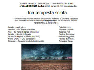 "Ina tempesta sciüta" sarà la commedia, in tre atti di Franco Zaffanella, che andrà in scena venerdì 18 luglio alle 21 in piazza del Popolo a Vallecrosia Alta.