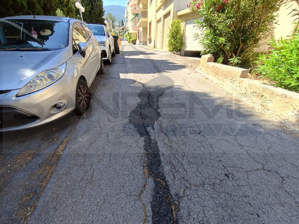 Sanremo: via Vallarino sprofonda sempre di più, oggi nuovo danno ad un'auto, un altro grido d'allarme dei residenti (Foto)