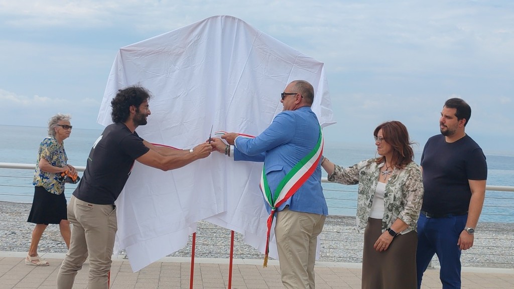Il taglio del nastro è avvenuto alla presenza di autorità civili, locali e regionali, della polizia locale, della Croce Azzurra Misericordia di Vallecrosia e dei cittadini. "Sono molto contenta di poter accompagnare Andrea Iorio in questa sua ulteriore tappa di percorso" - aggiunge l'assessore Rosa Rosella Muratore - "Questa scultura rientra anche nel piano di visione della nostra città che riflette, che si ferma e che ascolta. Ringrazio, quindi, Andrea per questa donazione".