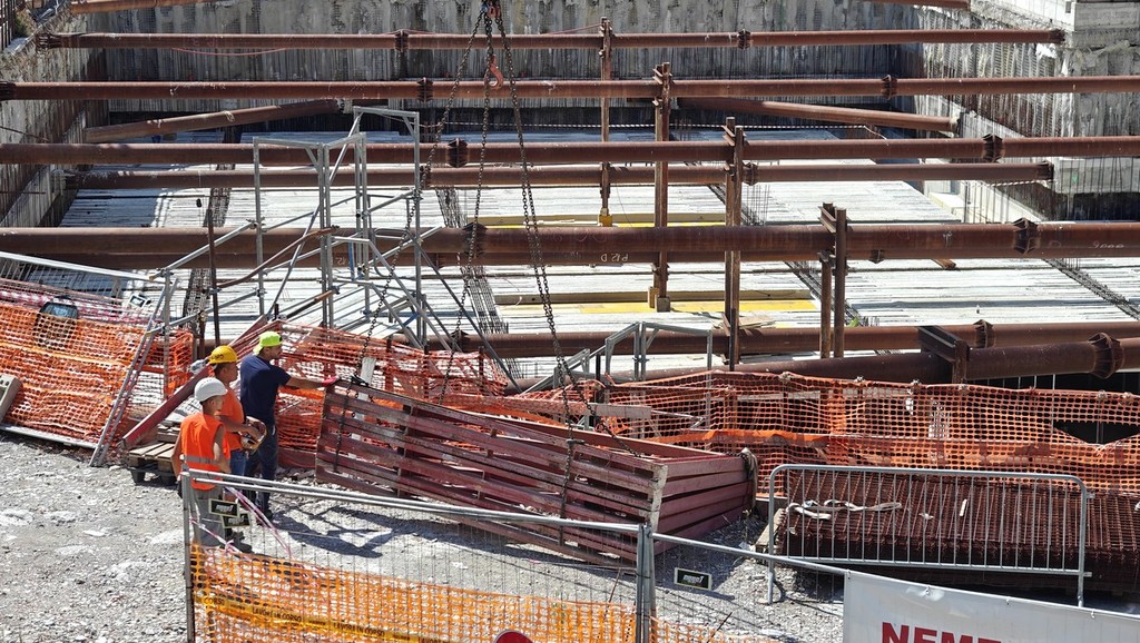 Nella giornata di oggi il comitato ha notato (e segnalato) una presenza significativa di personale operativo nella posa dei materiali: trova conferma quindi la notizia dei giorni scorsi, che aveva preannunciato il completamento dei solai del secondo piano sotterraneo con il conseguente arrivo di un mezzo carico dell'occorrente per procedere sul piano -1.