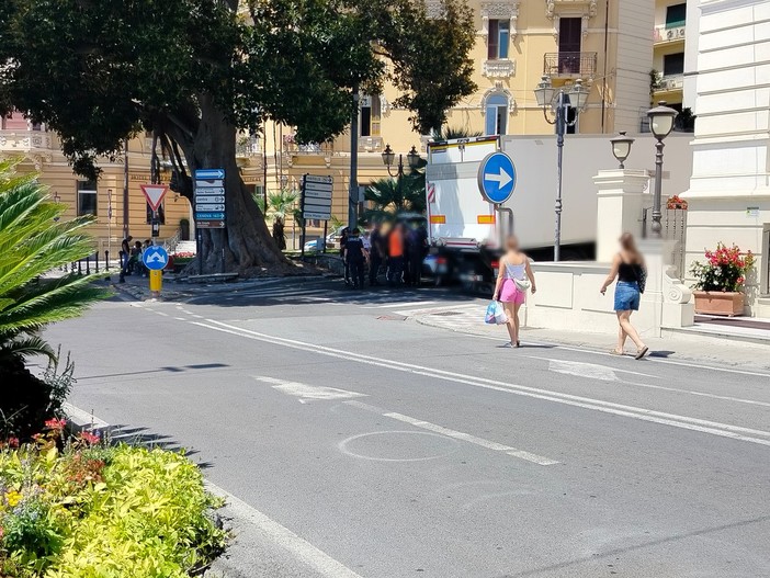 Sanremo, scooter travolto da un camion: uomo di 50 anni portato al Pronto Soccorso (Foto)