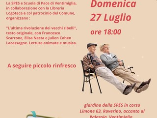 - Domenica 27 luglio, ore 18. Presso il giardino della SPES in corso Limone 63, Roverino, accanto al Palaroja, Ventimiglia: