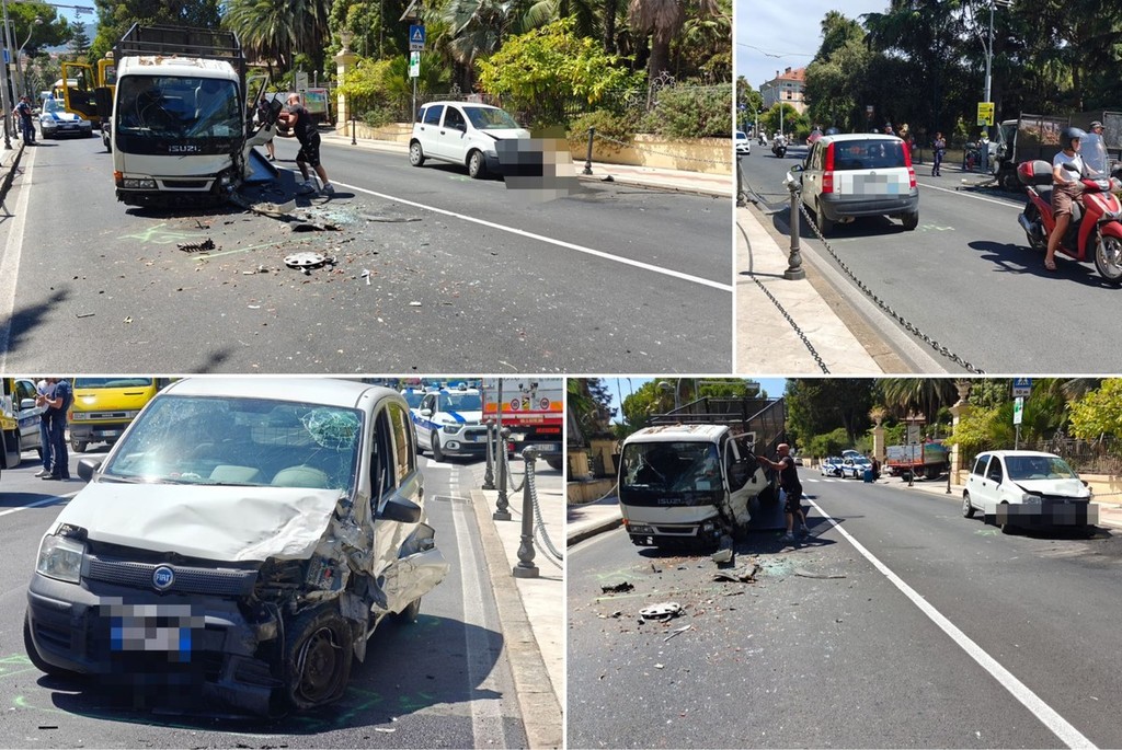 Sanremo, schianto frontale in corso Cavallotti: due feriti trasportati in codice giallo all’ospedale (Foto)